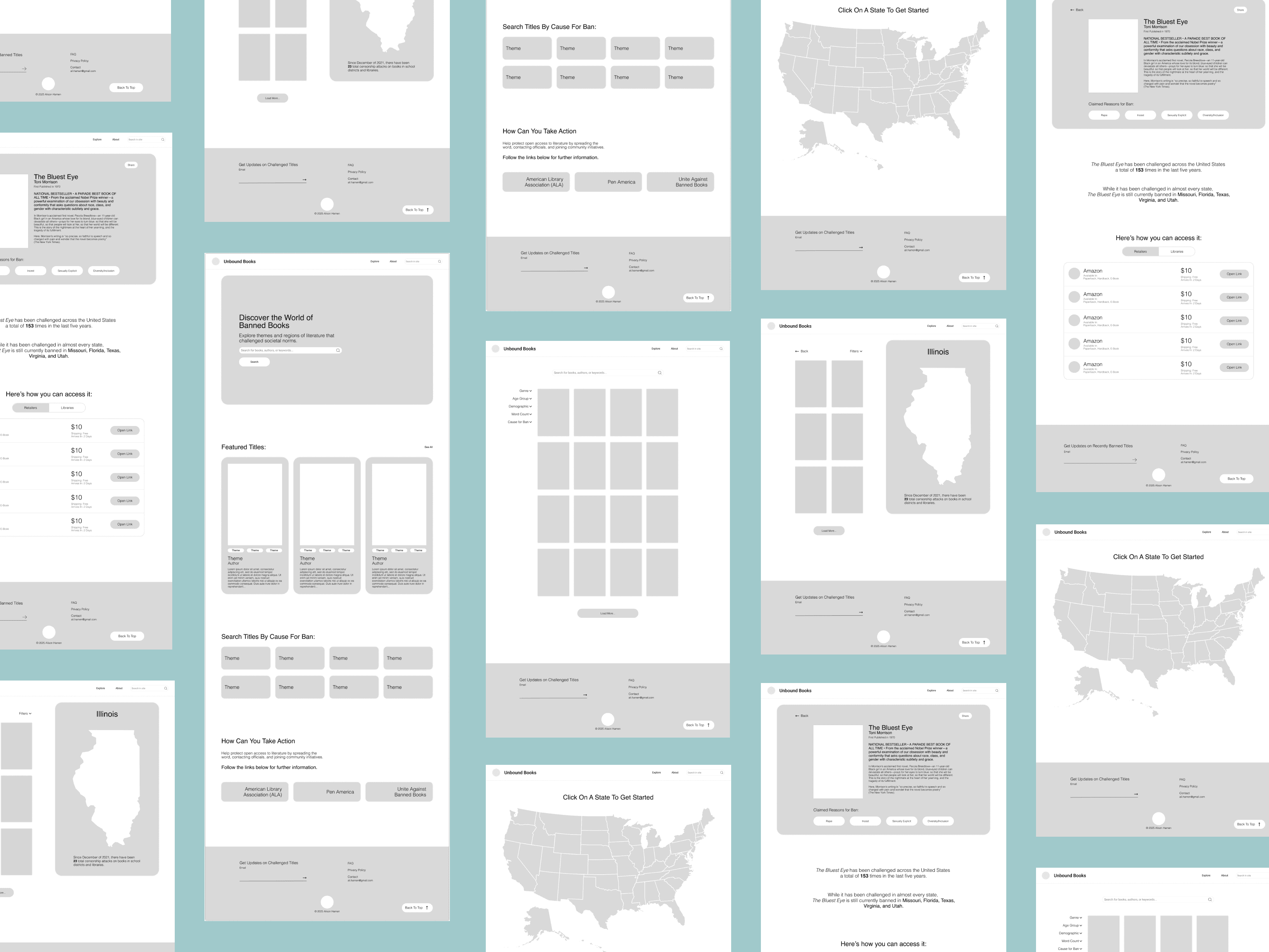 To emphasize the goal of discovery and access, I mapped how users would move from the homepage to finding a specific book or exploring regional censored titles. With this user flow as a starting point, I explored how different entry points, such as search, featured titles, or regional browsing, might affect the paths users take to reach book details, understand ban reasons, and find ways to access each title.